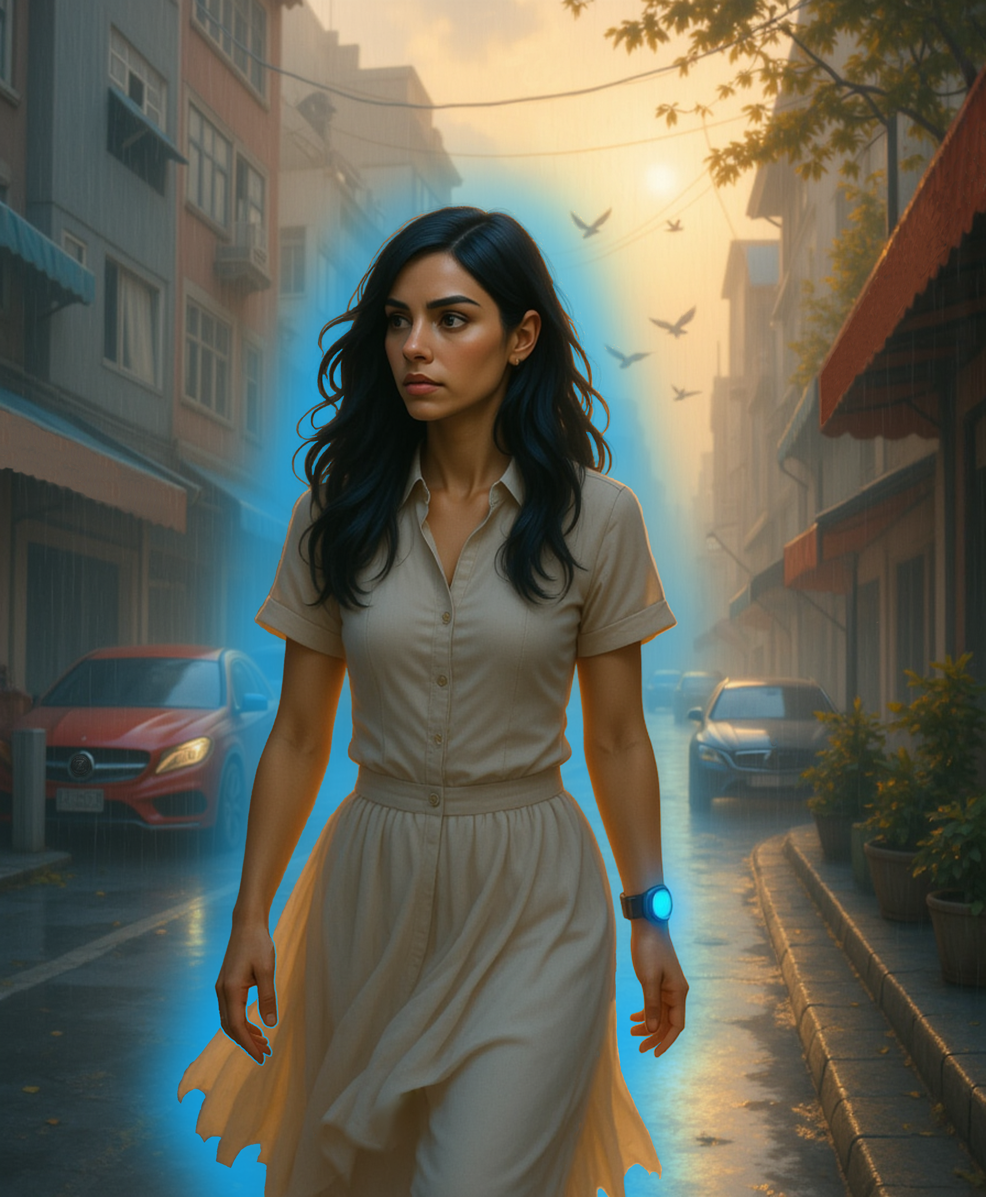 This artwork is a key visual from Reality 4892 within The Zepherous Chronicles. This piece captures the moment Zeph’s dormant chrono-aura ignites, illuminating a rain-soaked street and signaling the beginning of a fracture within this timeline. Created as part of the ongoing Zepherous Universe, the artwork blends cinematic lighting, atmospheric realism, and subtle sci-fi elements to portray the emotional weight of an awakening that will reshape countless realities. This scene represents one of the earliest documented ruptures in the saga, a quiet shift that marks the rise of Zeph as a force to be reckoned with.